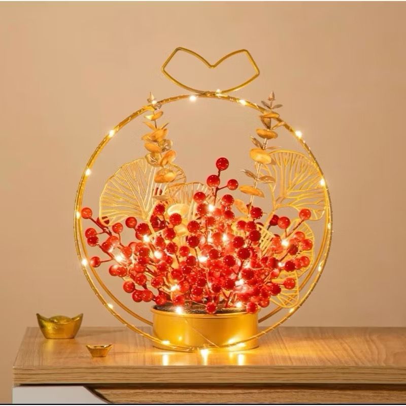 Set Vas Bunga Cherry Merah Gold Hiasan Pajangan Rumah Imlek Sincia Ular 2025 Mewah Premium