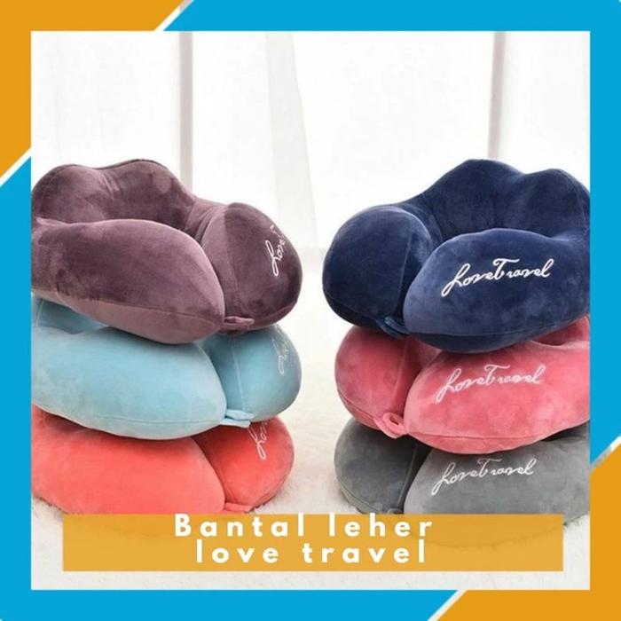 Bantal Leher Dewasa Love Travel Berbentuk Tidur Siang Bantal Mobil Super Lembut - Love travel abu