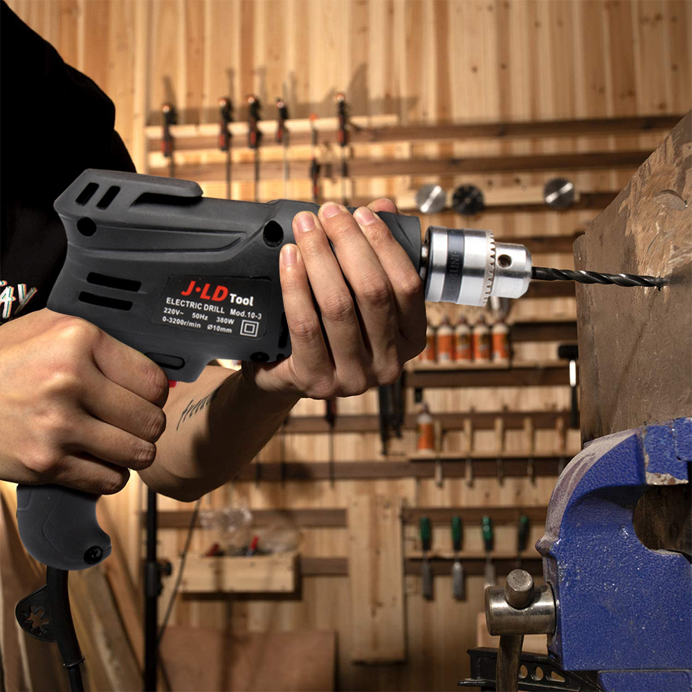 JLD Mesin bor listrik J10-3 bor listrik Murah alat bor listrik 380W 10mm Chuck Bor tangan listrik Bor obeng Bor kayu bet