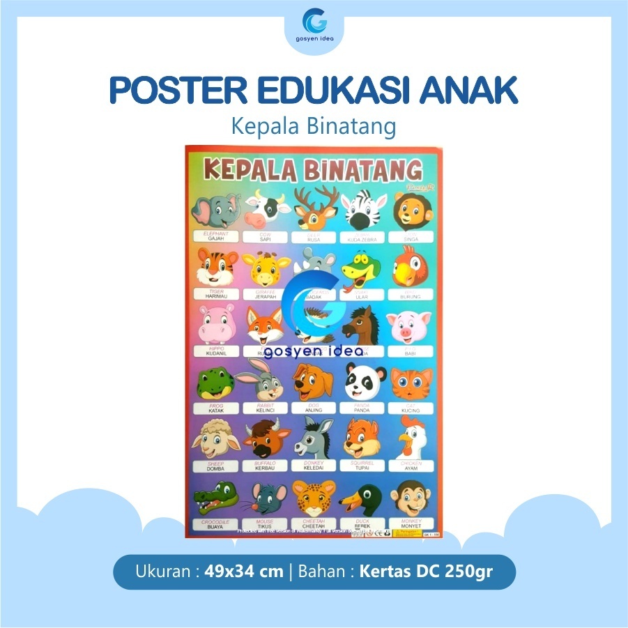 Paket Poster 6 Lembar Edukasi Anak Belajar Angka Buah Huruf ABC Sayuran Kendaraan Hewan