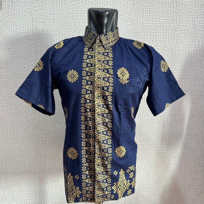 SETELAN BATIK SONGKET PALEMBANG NAVY PAYET - KEMEJ PENDEK, M