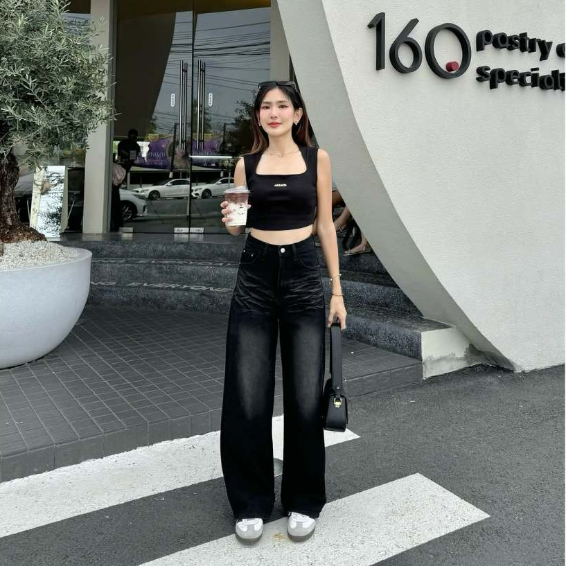 Highwaist Baggy Jeans Hangover Wanita Celana Kulot Jeans Loosepant Gombrong Highwaist Abu Wanita Jeans Premium Quality M