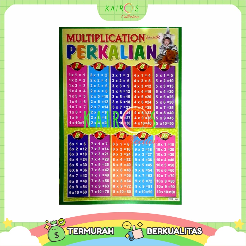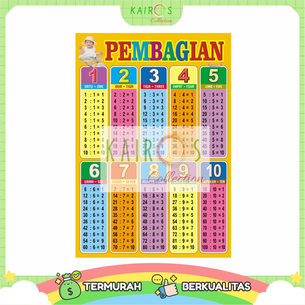 Paket 5 Poster Dinding Edukasi Anak Belajar Gambar Perkalian Pembagian Pengurangan Pertambahan l Poster Belajar Anak PAUD TK