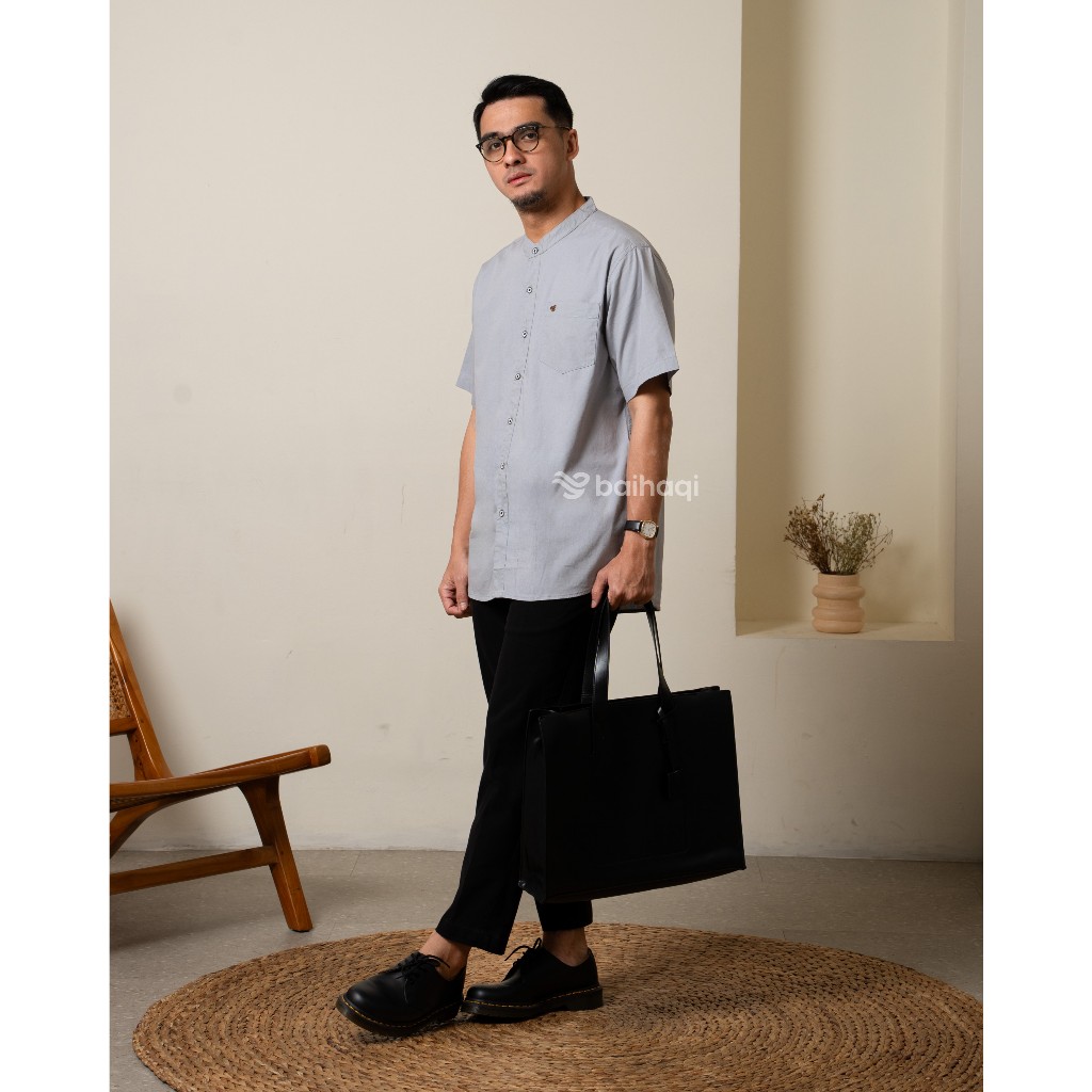 Baihaqi Kemeja Koko Basic Buraidah| Kemeja Pria Lengan Pendek Kerah Shanghai Polos Basic | Kemeja Koko Kemko Solid Bkk33
