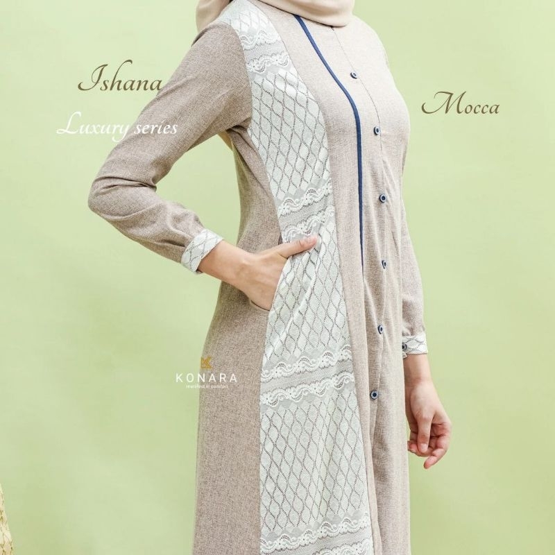 Baju Gamis Muslim Wanita Modern Ishana Luxury Series Katun Madinah Premium Busui Terbaru Original By Konara