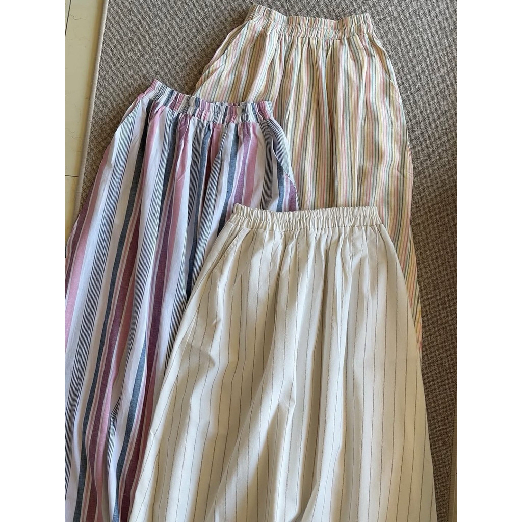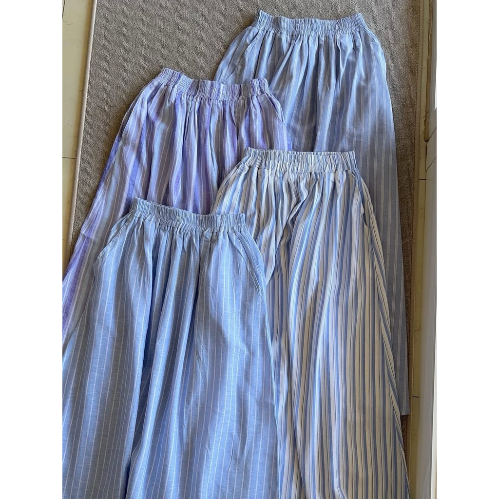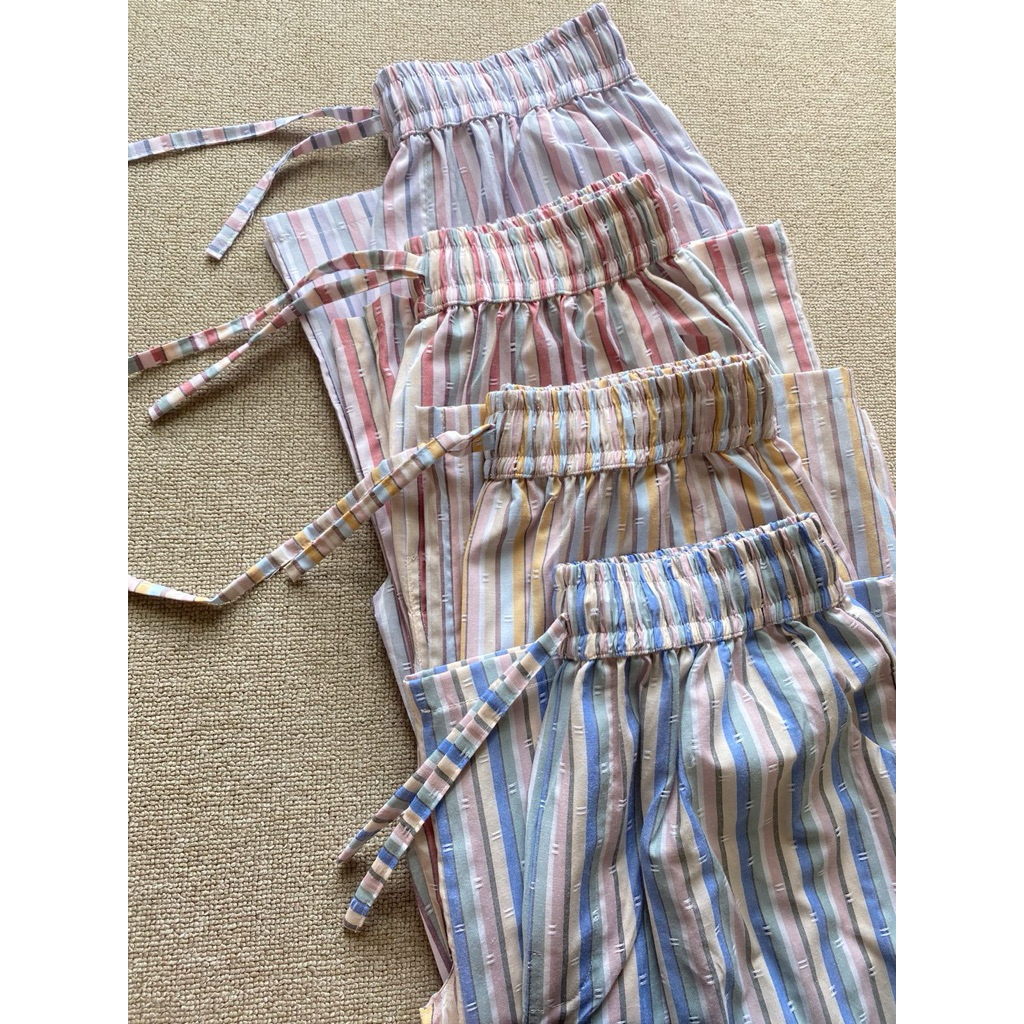 Celana Linen Wanita Motif Garis Loose Baggy Pants Kulot Kantor Santai Boho Style – Stripes Korea Look Murah Gratis Ongki