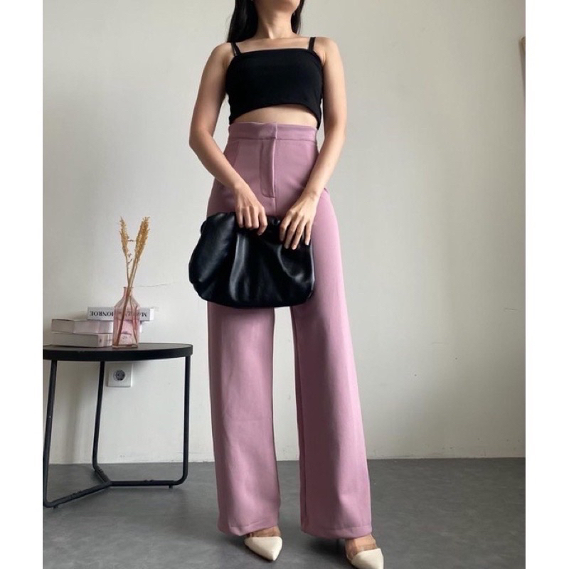 Celana Panjang Highwaist Kulot Loose Scuba Wanita Celana Anti Kusut Celana Kantor Formal Reguler Size Standar Jumbo