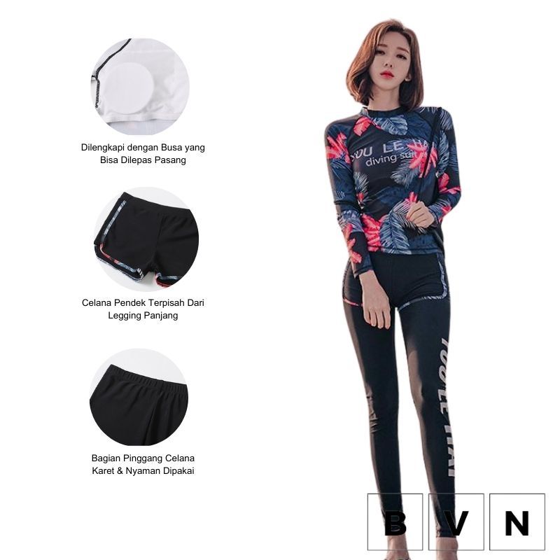 BVN Swimsuit Baju Renang Wanita Muslim Set Panjang Motif Floral 9055