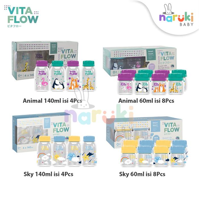 VITAFLOW BOTOL ASI 3IN1 PP 140ML ISI 4PCS DAN 60ML ISI 8PCS BOTOL ASI VITA FLOW PENAMPUNG PENYIMPANAN BAYI - SKY 140ML 4PCS