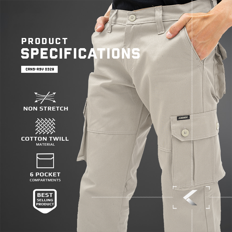 Carnos Rivers Celana Cargo Panjang Pria Reguler Cream