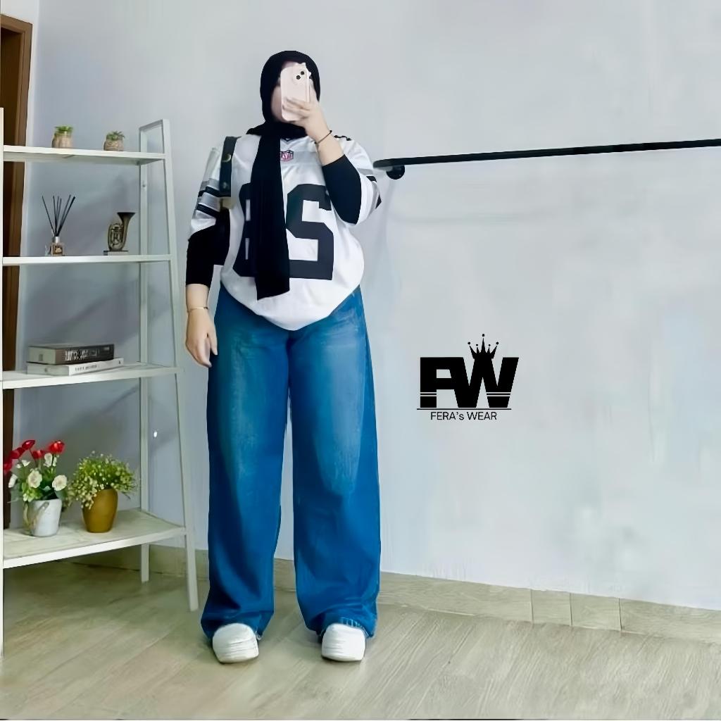 Celana Baggy Jeans Wanita Jumbo Pinggang Highwaist Celana Kulot Wanita Big Size