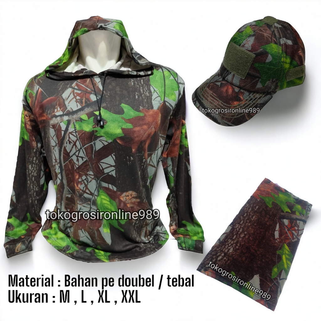 Kaos hoodie camo 1 paket bahan pe doubel / tebal