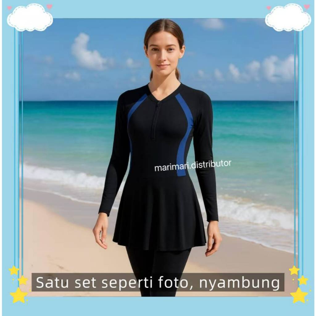 39050 Baju renang dewasa hijab muslim lengan celana panjang nyambung antiuv muslimah swimwear
