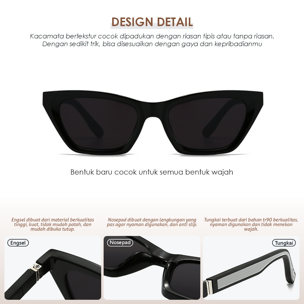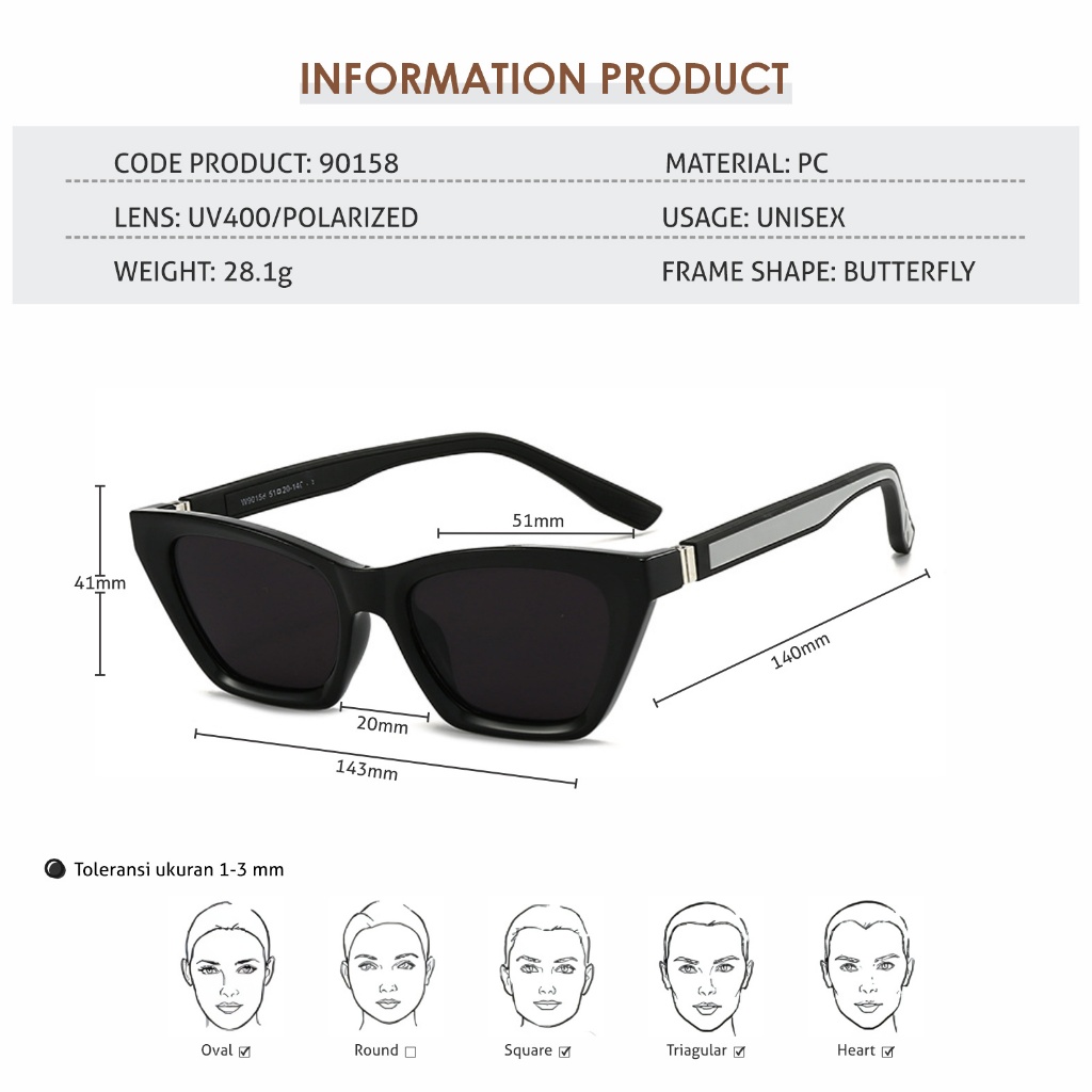 La Chapella Kacamata Hitam Cat Eye Sunglasses Fashion Pria Wanita Unisex Polycarbonate Polarized UV400 Trendi 90158