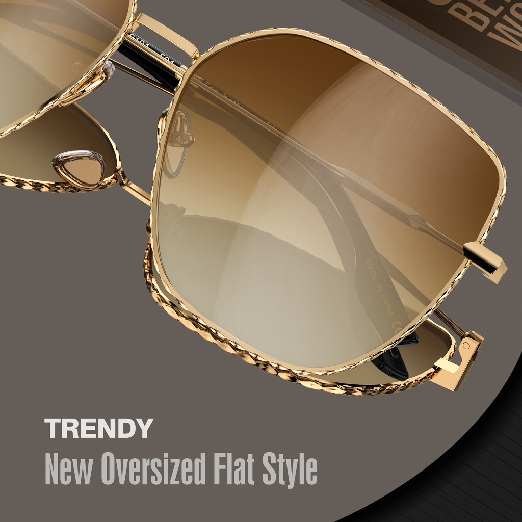 Luenx Kacamata Hitam Trendy Square Oversized Women Aviator Sunglasses - Polygon Flat Three dimensional Rhombic Loop Wire Frame PC Lens 8101-1