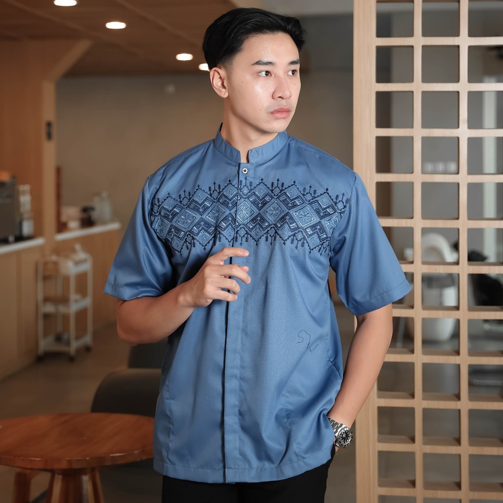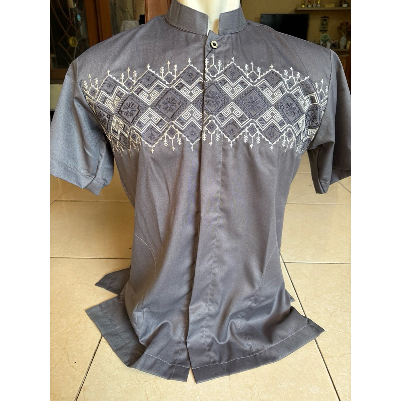 Baju Koko Muslim Bordir Pria Dewasa Tangan Pendek Bahan Katun Toyobo Warna