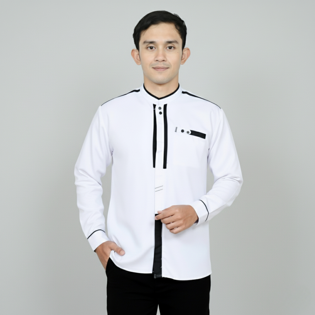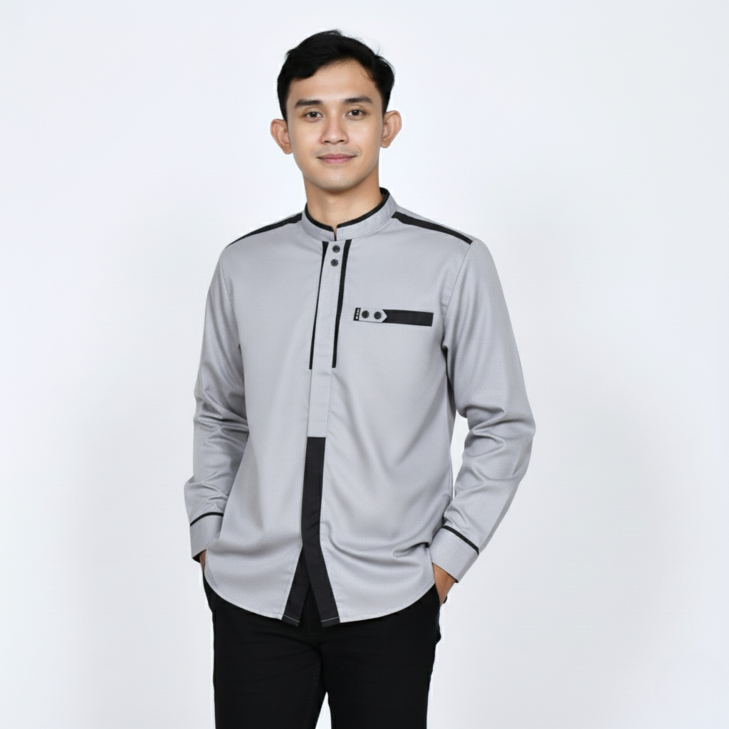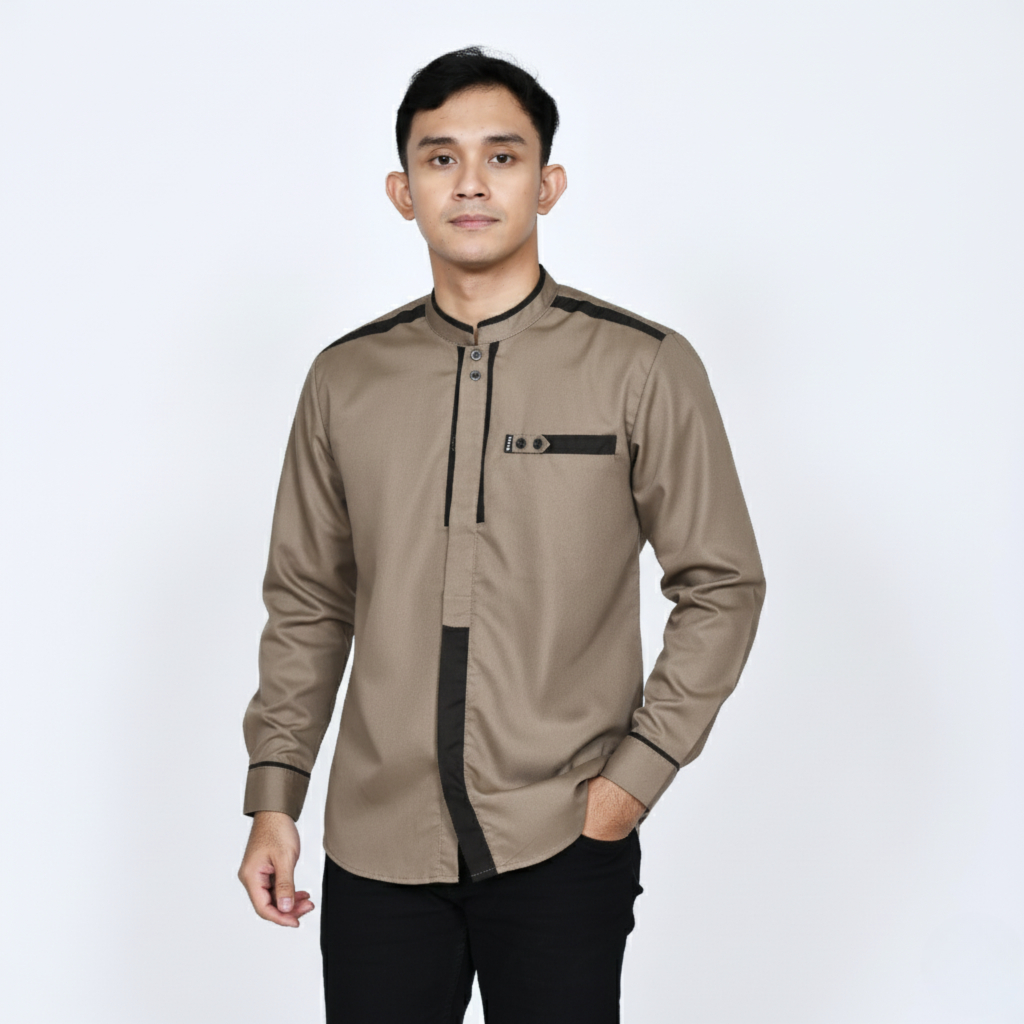 Baju Koko Pria Dewasa Lengan Panjang Warna Coklat Motif Katulistiwa Elrumi Katun
