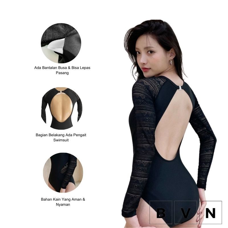 BVN Swimsuit Baju Renang Wanita Fashion Renda Lengan panjang High Quality 8046