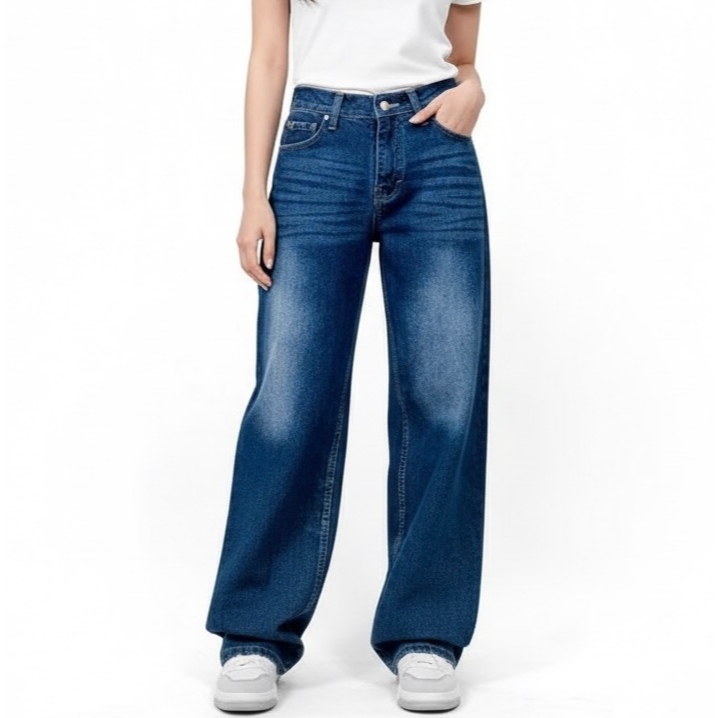 Celana Jeans Wanita Baggy Oversize Loose High Waist Wide Leg Korean Look Kekinian biru retro Vintage Murah Gratis Ongkir