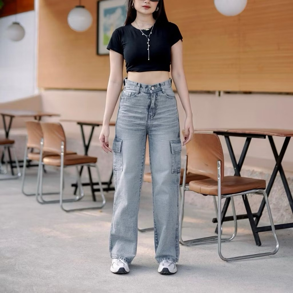 Celana cargo baggy jeans highwaist retro whiskers unisex celana kulot gombrong cargo premium tebal Murah Gratis Ongkir