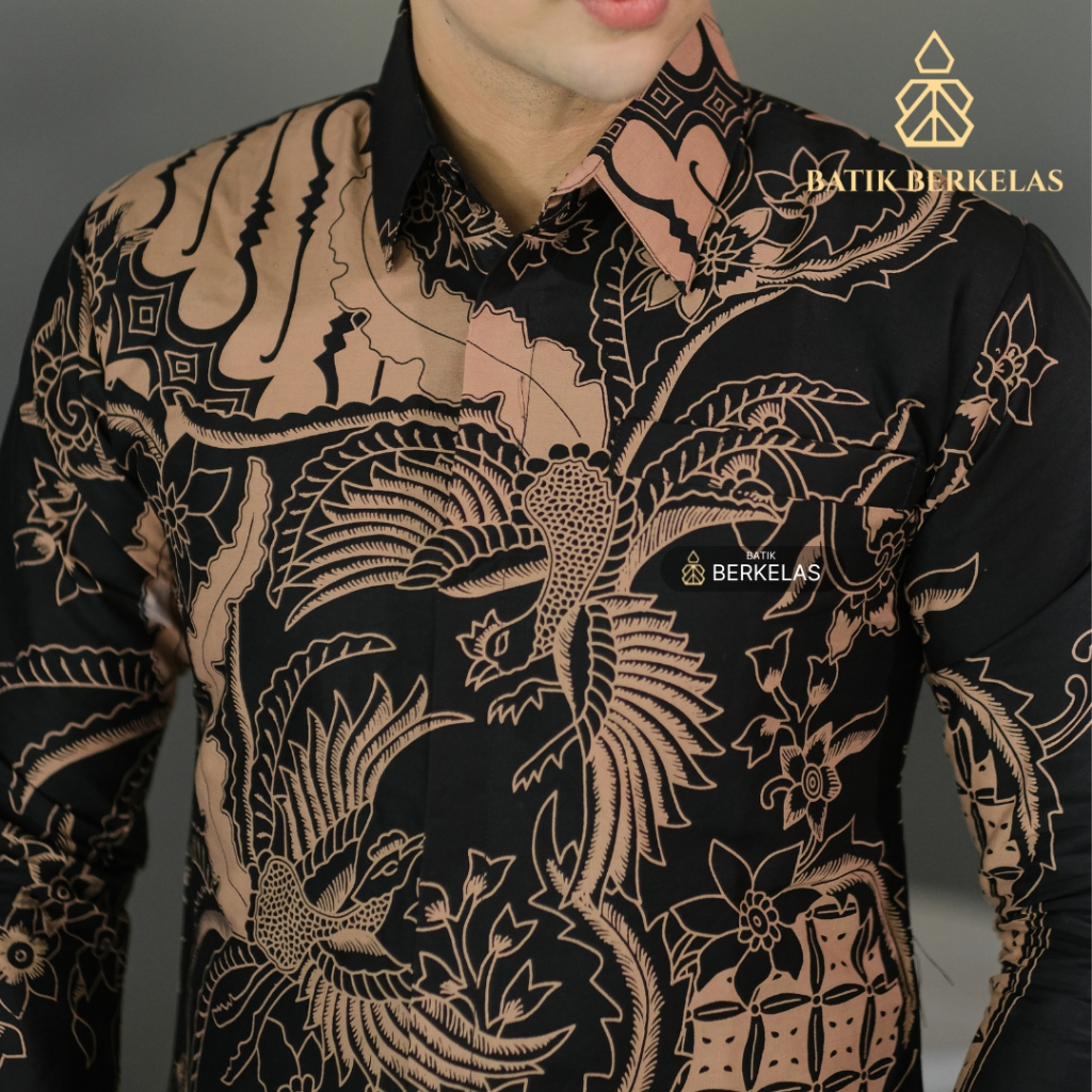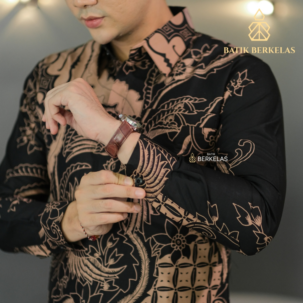 Batik Berkelas Cakra Hitam Kemeja Batik Pria Slimfit Lapis Furing Katun Elegan Lengan Panjang Untuk Kondangan Lamaran Ka