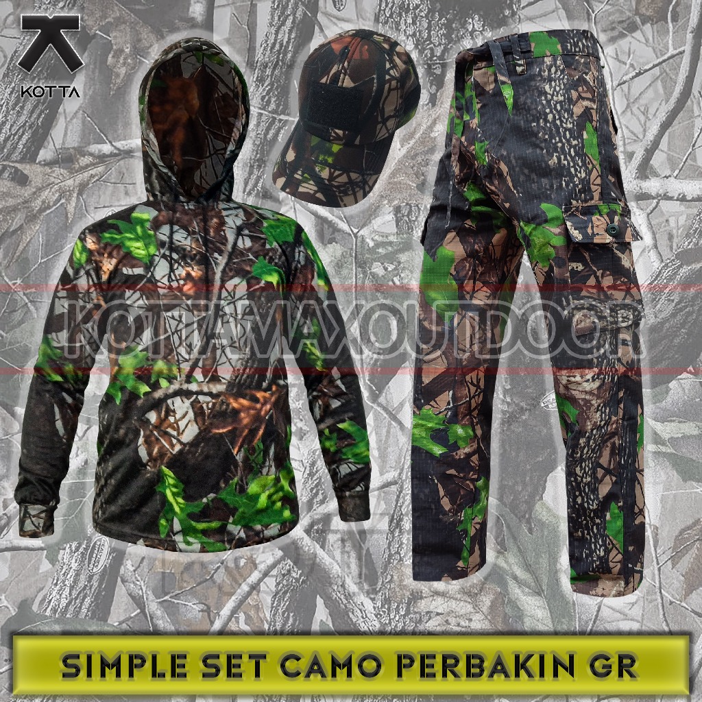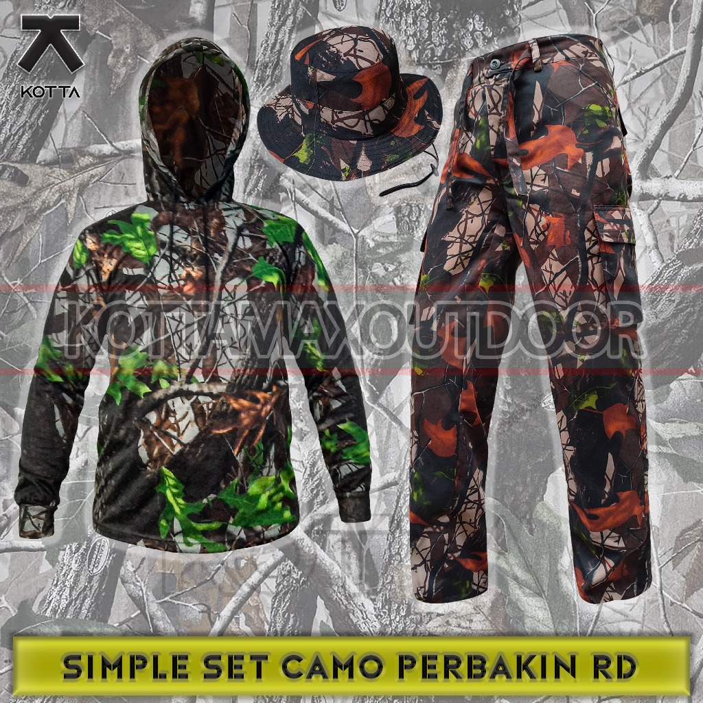 SATU SET SETELAN BAJU KAOS HOODIE CELANA TOPI KAMUFLASE CAMO PERBAKIN HUNTING BERBURU DECKER
