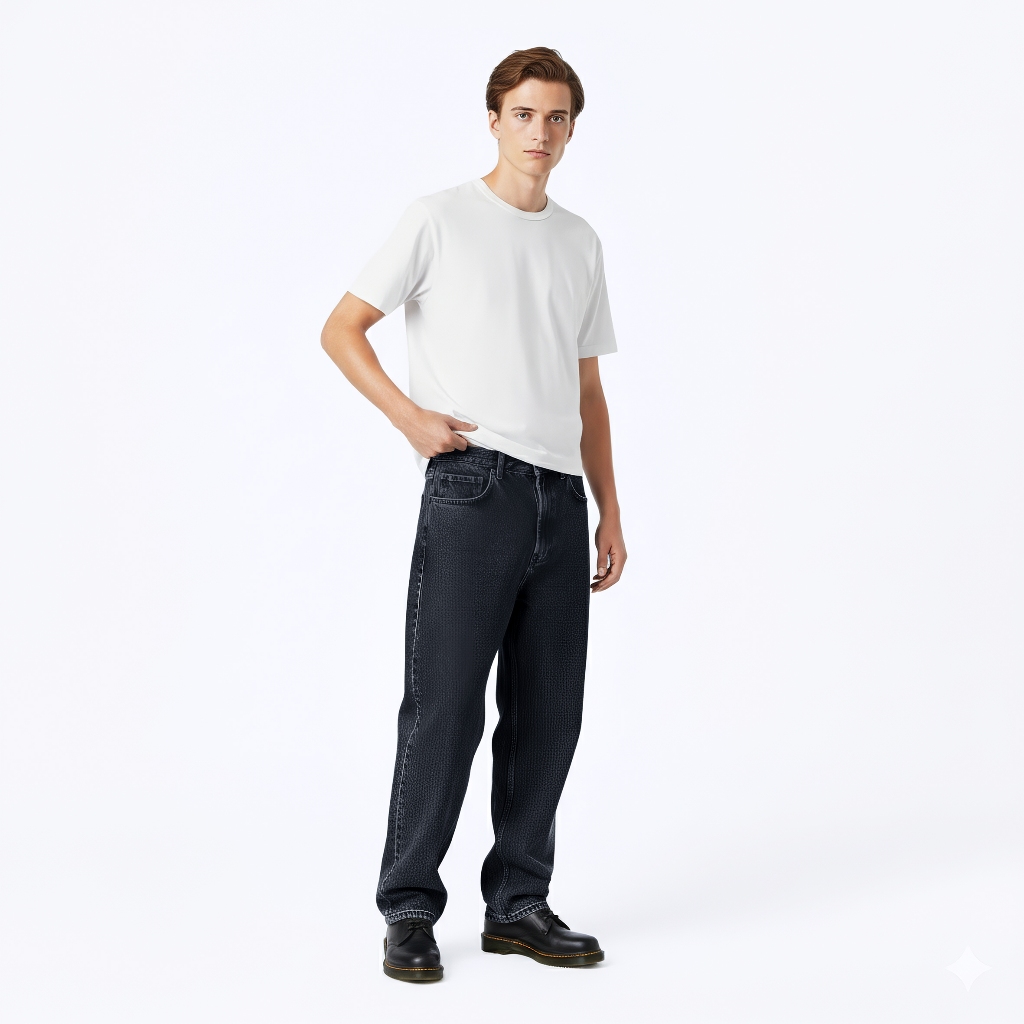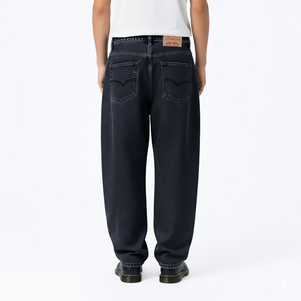 Benhill Celana Panjang Pria Premium Denim Baggy Loose Fit Pants Black Washed Jeans A345