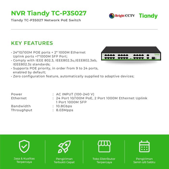 TIANDY SWITCH POE TC-P3S027 27 CHANNEL