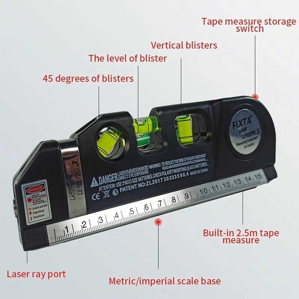 Fixit Level Pro 3 Penggaris Laser Waterpass Meteran Laser 250 Cm Magnet
