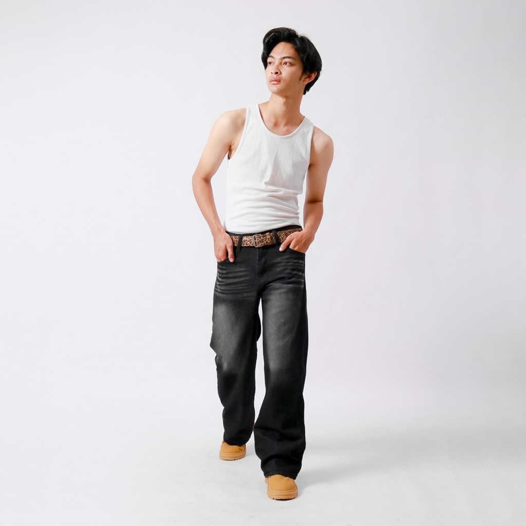 Celana Jeans Baggy Pants Loose Fit Reguler Oversize Vintage Gombrong Wide Leg Black Whikser