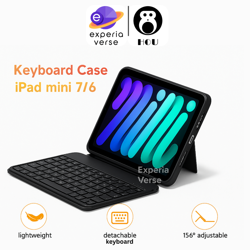 Hou Mate-8 Keyboard Case Folio untuk iPad Mini 6th gen / 7th gen (A17 Pro)