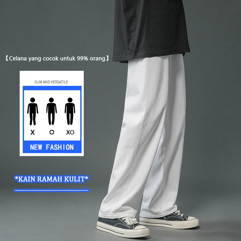 Celana Jeans Pria Baggy Celana Panjang Putih Oversize Straight Korean Style Blue Celana Kulot Jeans