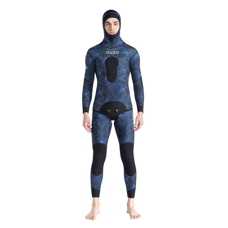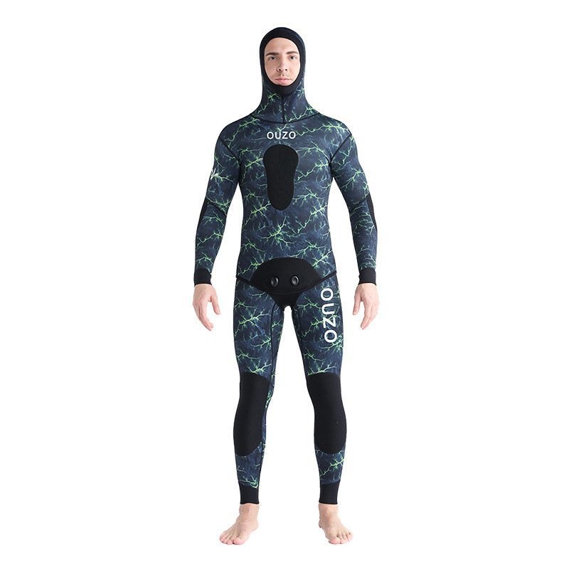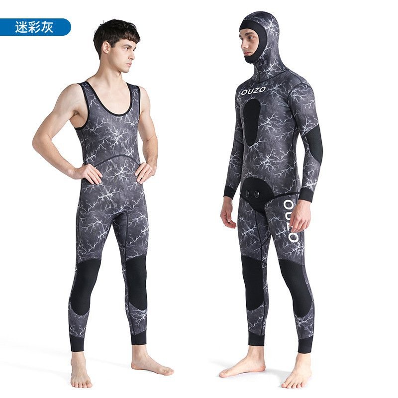 Men Women 1.5mm Spearfishing Premium Camouflage Neoprene 2-pieces Wetsuit Scuba Diving Suit Hood E2V