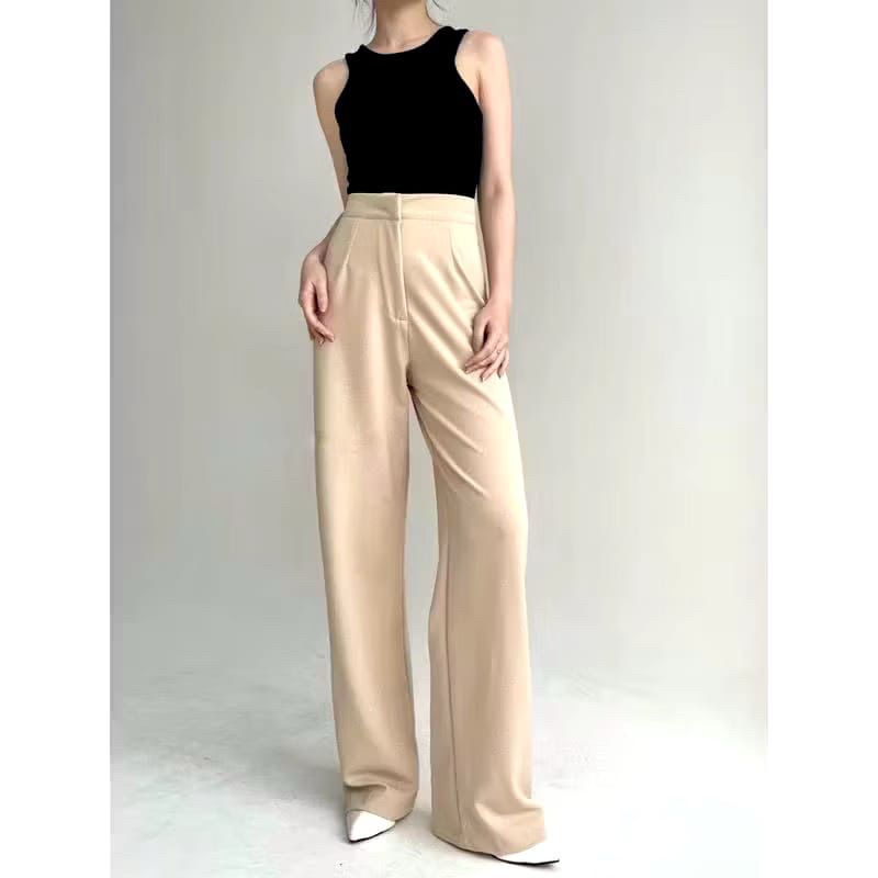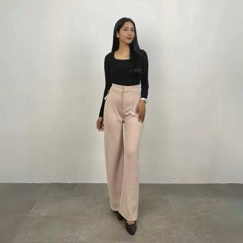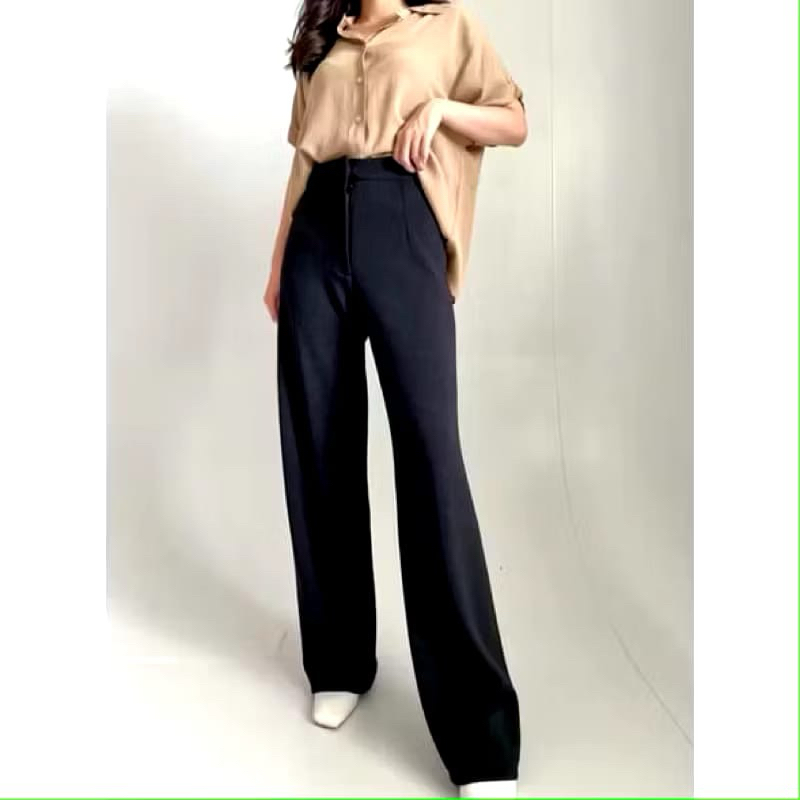 Loose Pants Scuba Wanita Premium Highwaist Celana Kulot Scuba Anti Kusut Celana Kerja Wanita