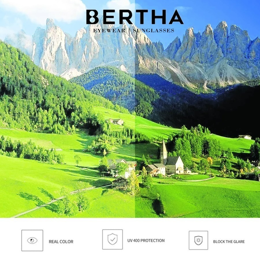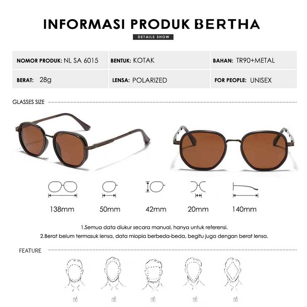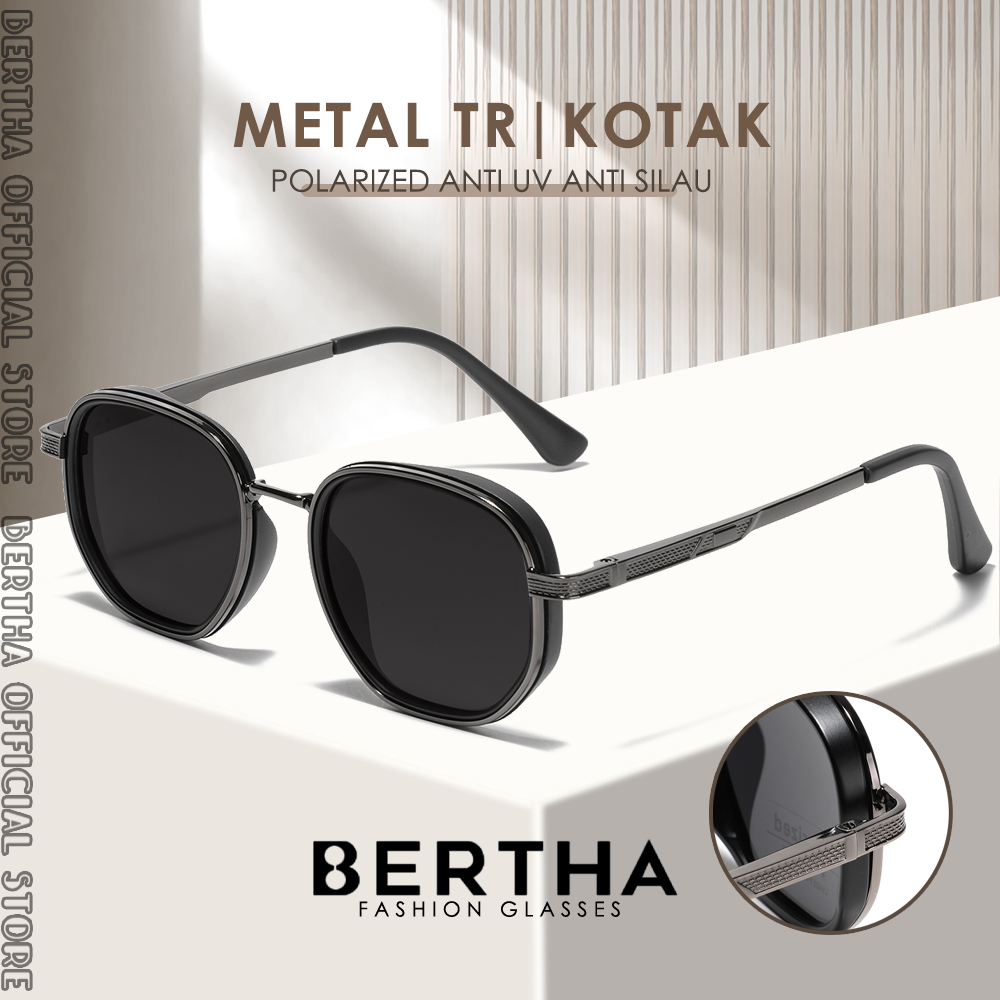 Original Bertha Kacamata Sunglasses Polarized Style Kotak Bahan Tr90+Metal Kokoh Fashion Pria Dan