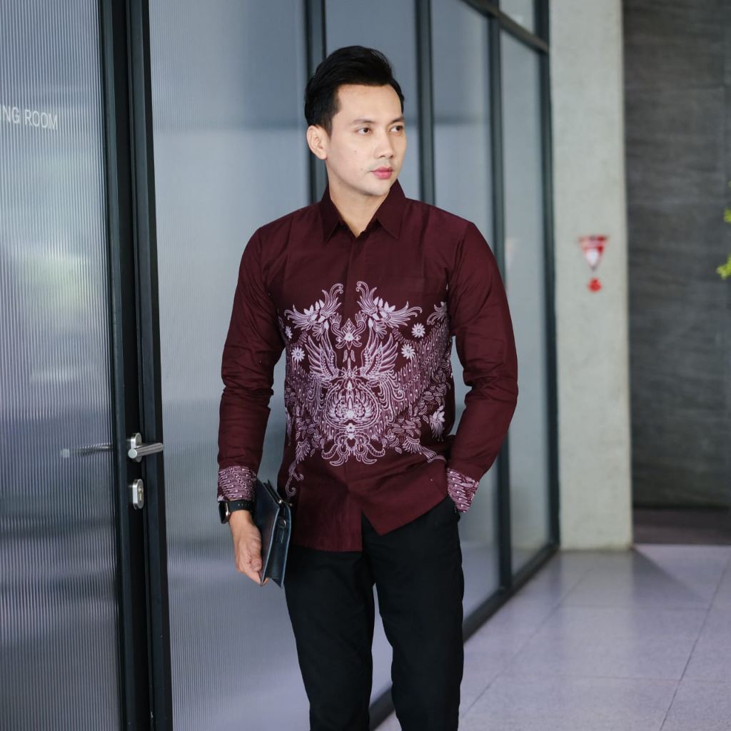 Batik Baraka Burgundy Kemeja Batik Pria Modern Original Slimfit Lengan Panjang Lapis Motif 008 Baju Batik Pria Jumbo