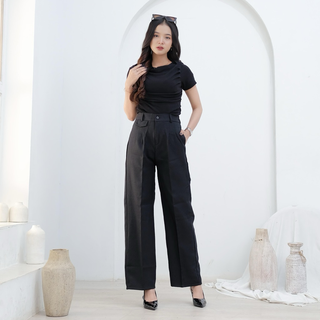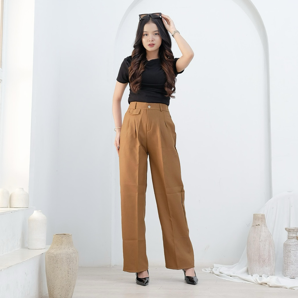 Oro Pants Highwaist Loose Pants Bahan Semi Woll