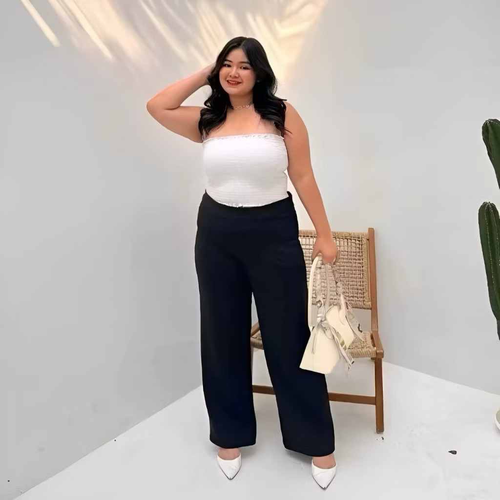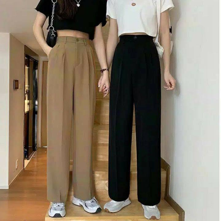 JUMBO Loose Pants Trousers Wanita Anit Kusut Bahan Jatuh Celana Higwaist Wanita Celana Kekinian