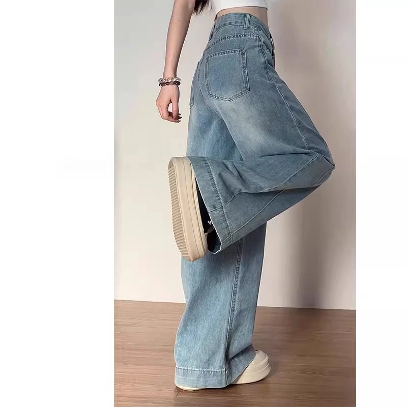 LULU Jeans Celana Jeans terbaru kulot Korea Biru muda pinggang tinggi Baggy Jeans baggy baggy Murah Gratis Ongkir