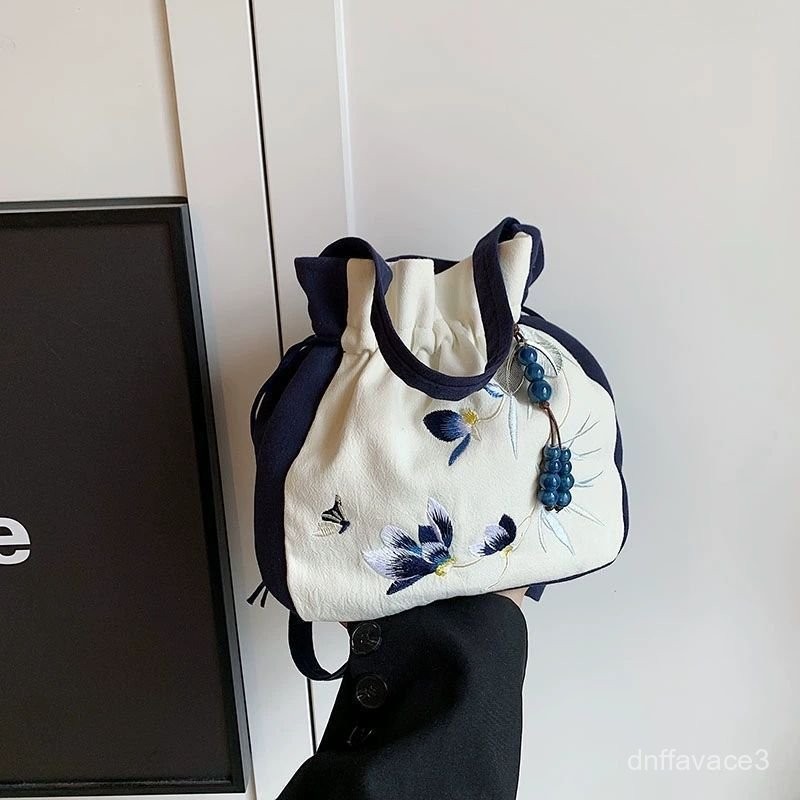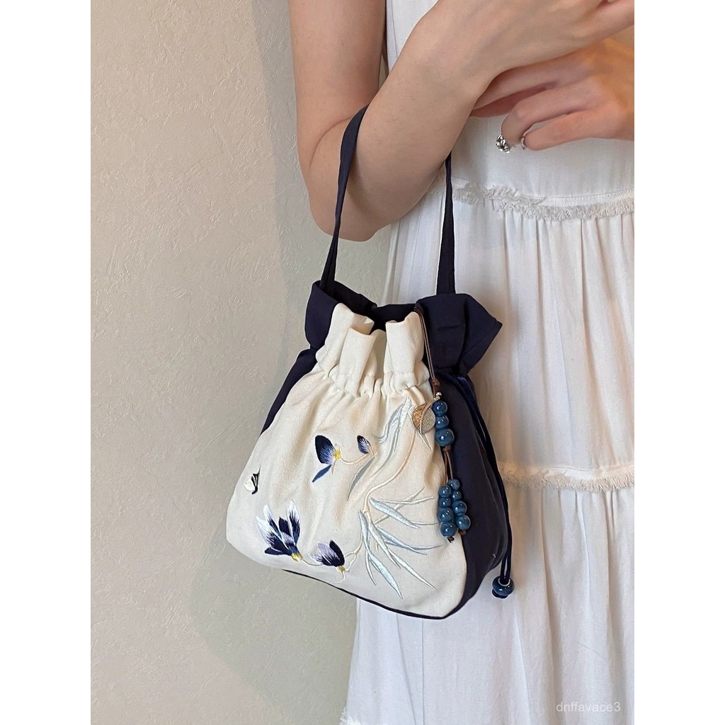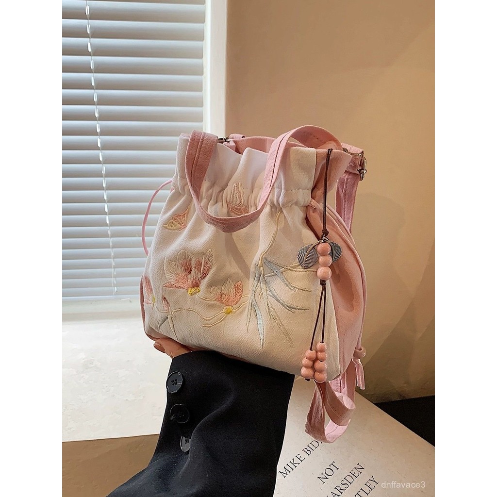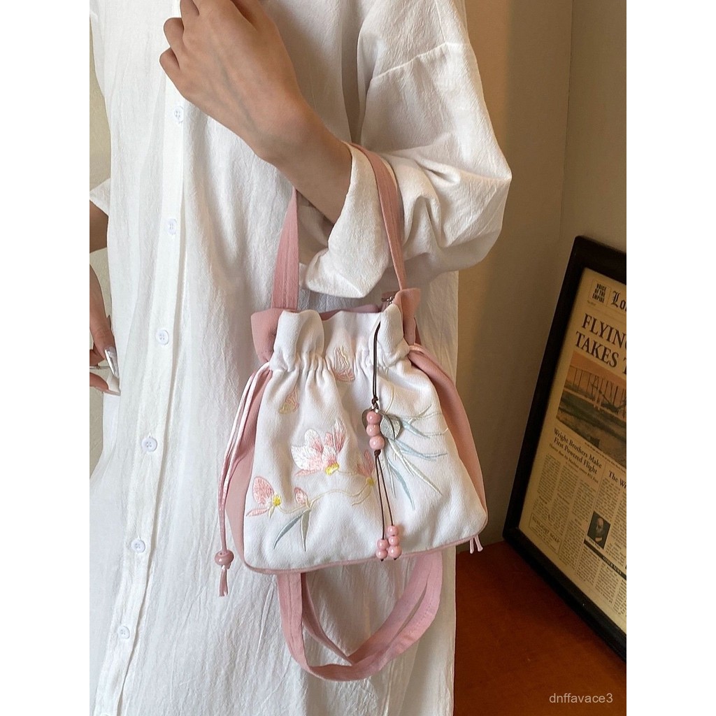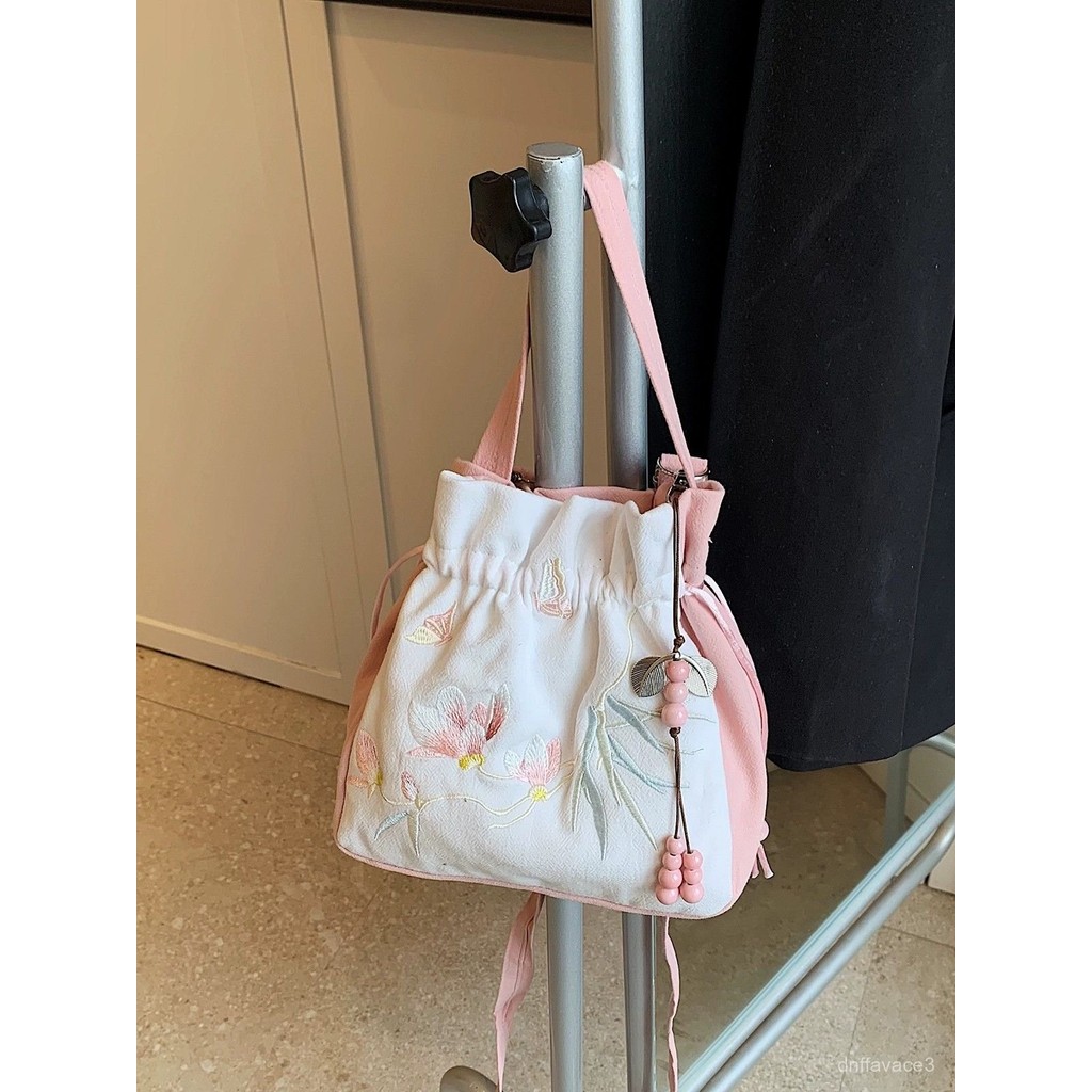 Hanfu Crossbody Bag Women, Embroidery, Han Elements, Tassel, Casual Versatile Cheongsam Bucket Bag