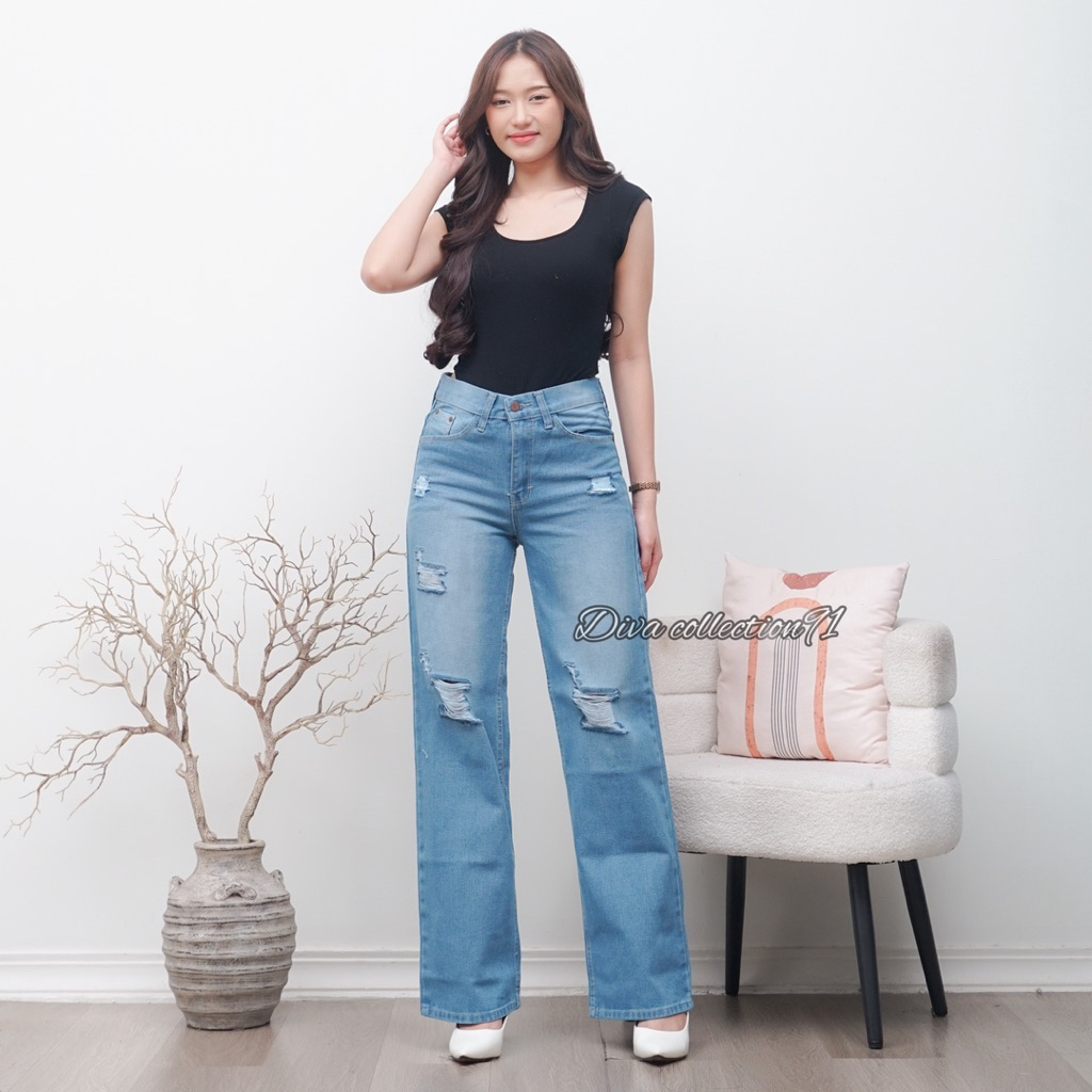 CELANA HIGHWAIST JEANS WANITA BEGGY LOSSE SOBEK COWO CEWE Murah Gratis Ongkir