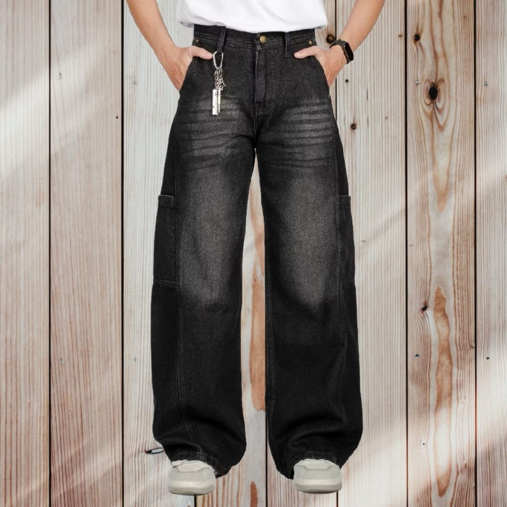 Celana Baggy Jeans Pecah Pola - Origami Flow Black Abyss - Streetwear Baggy Style- Lebar Gombrong Skena Jeans Baggy