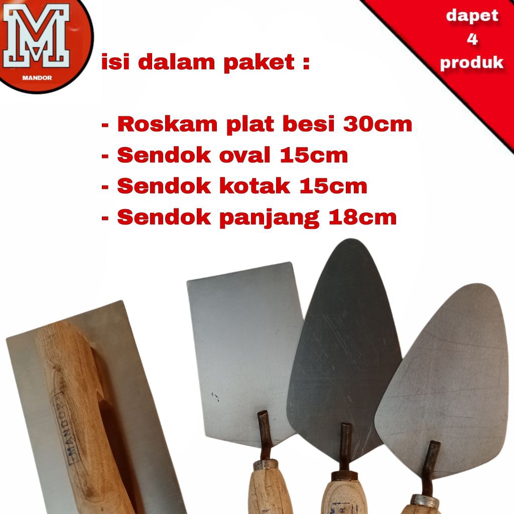 Paket 4 / Roskam plat besi 30cm + 3 sendok semen cap galur /peralatan tukang bangunan