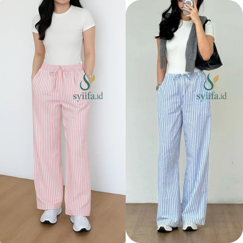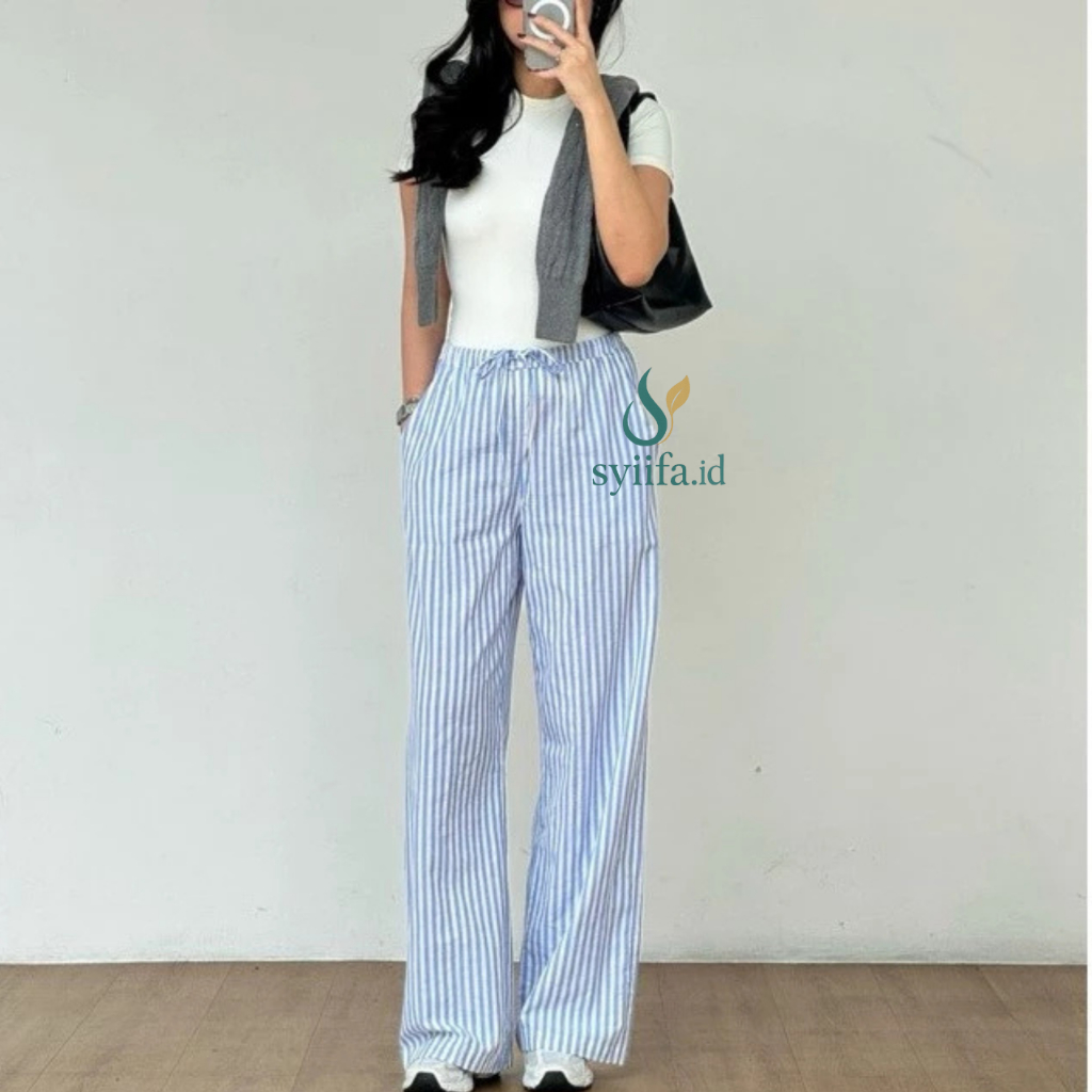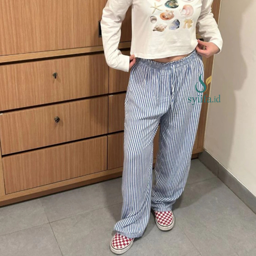 Everyday Pants Stripe Pants Celana Panjang Wanita Baggy Kantor Kuliah Motif Garis Kulot stripe Murah Gratis Ongkir