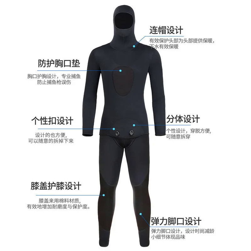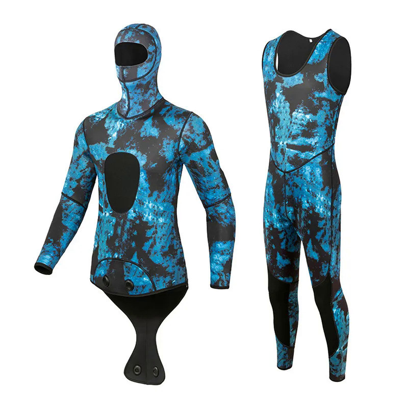 3Mm Kamuflase Wetsuit Lengan Panjang Fisi Berkerudung 2 Buah Neoprene Kapal Selam untuk Pria Tetap Hangat Pakaian Selam