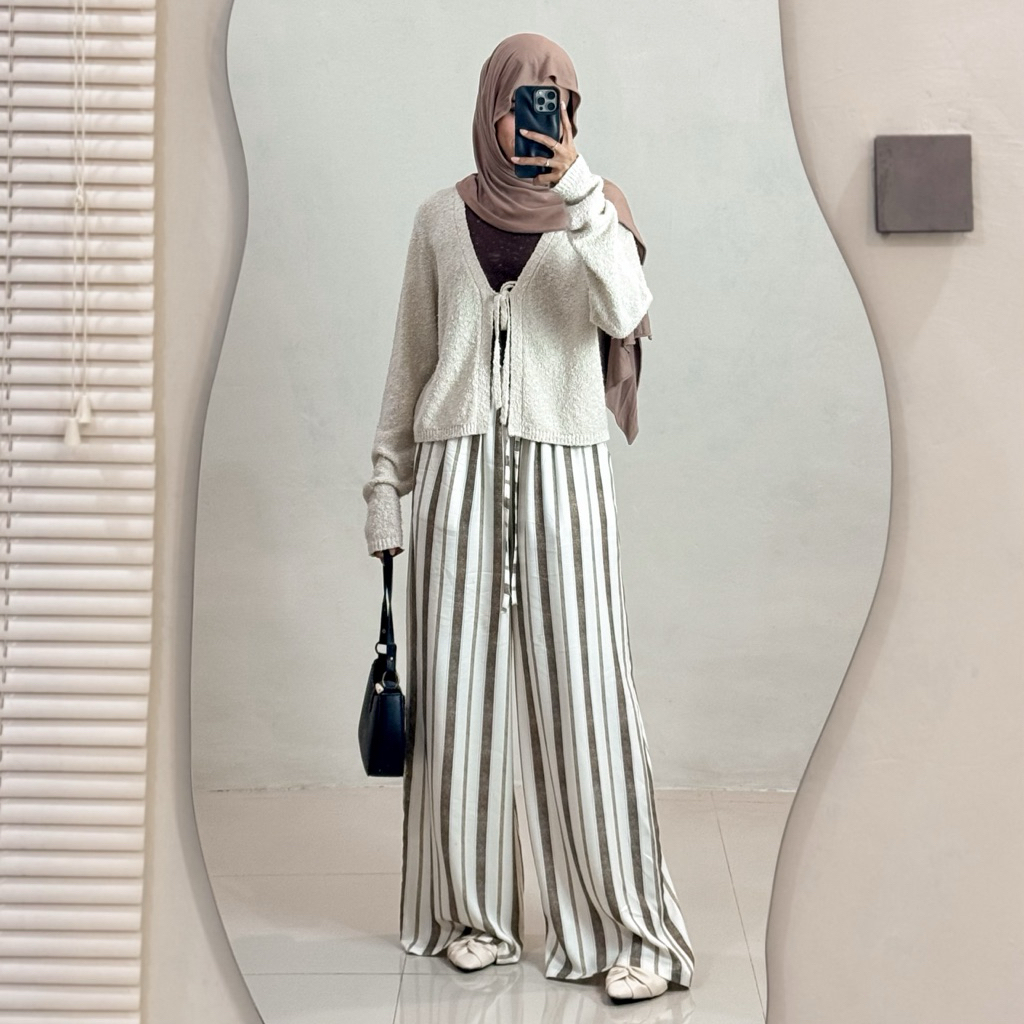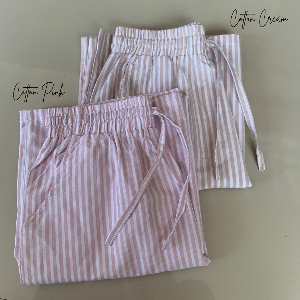 Xluvraa Kulot Linen Stripe Celana Panjang Wanita Baggy Kantor Kuliah Motif Garis Kulot Pinstripe Murah Gratis Ongkir