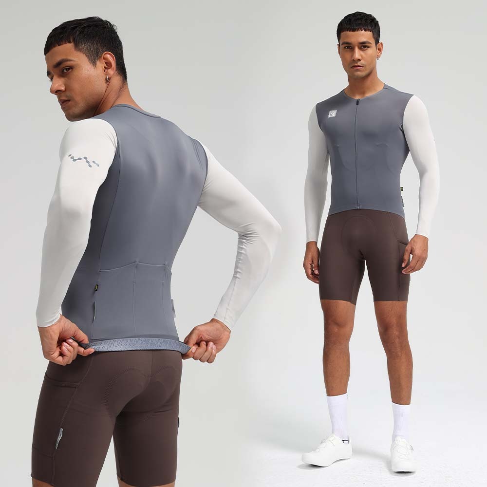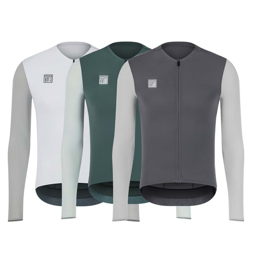Santic Jersey Sepeda Pria Road Bike Lengan Panjang Bernapas Reflektif dengan Saku WM24C01173