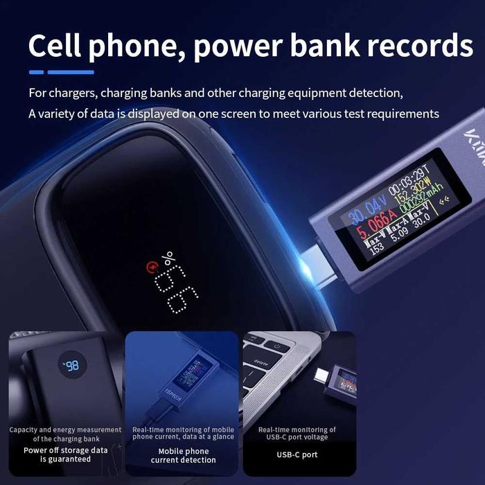 Voltmeter Ammeter Pengukur Arus Listrik USB Type C Digital Display OLED 30V 12A 360W - KWS-2302C