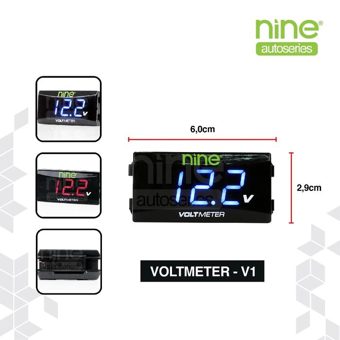 LX-TRIX Voltmeter Ampere Aki Motor Digital 12V Waterproof Accu Meter Universal V1 - NINE AUTOSERIES - V1 BLUE
