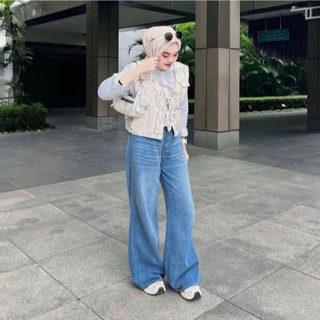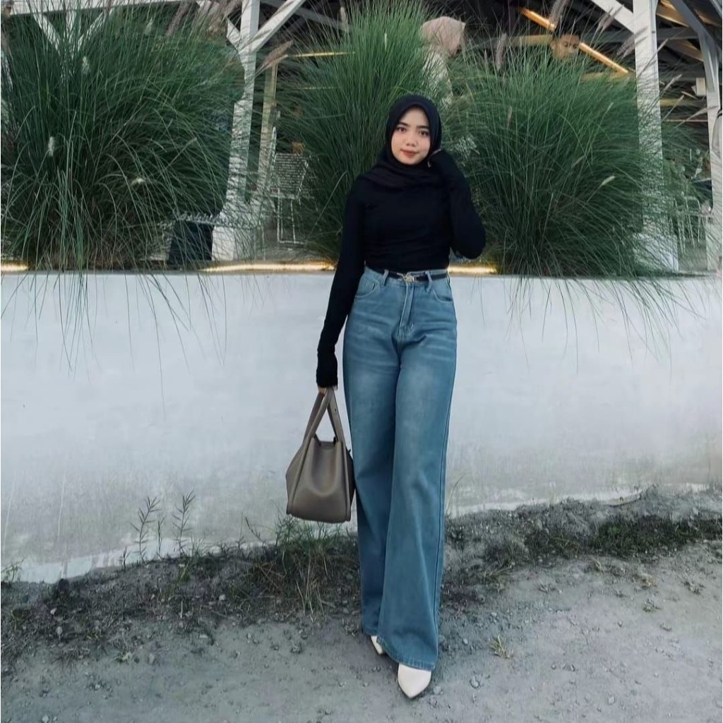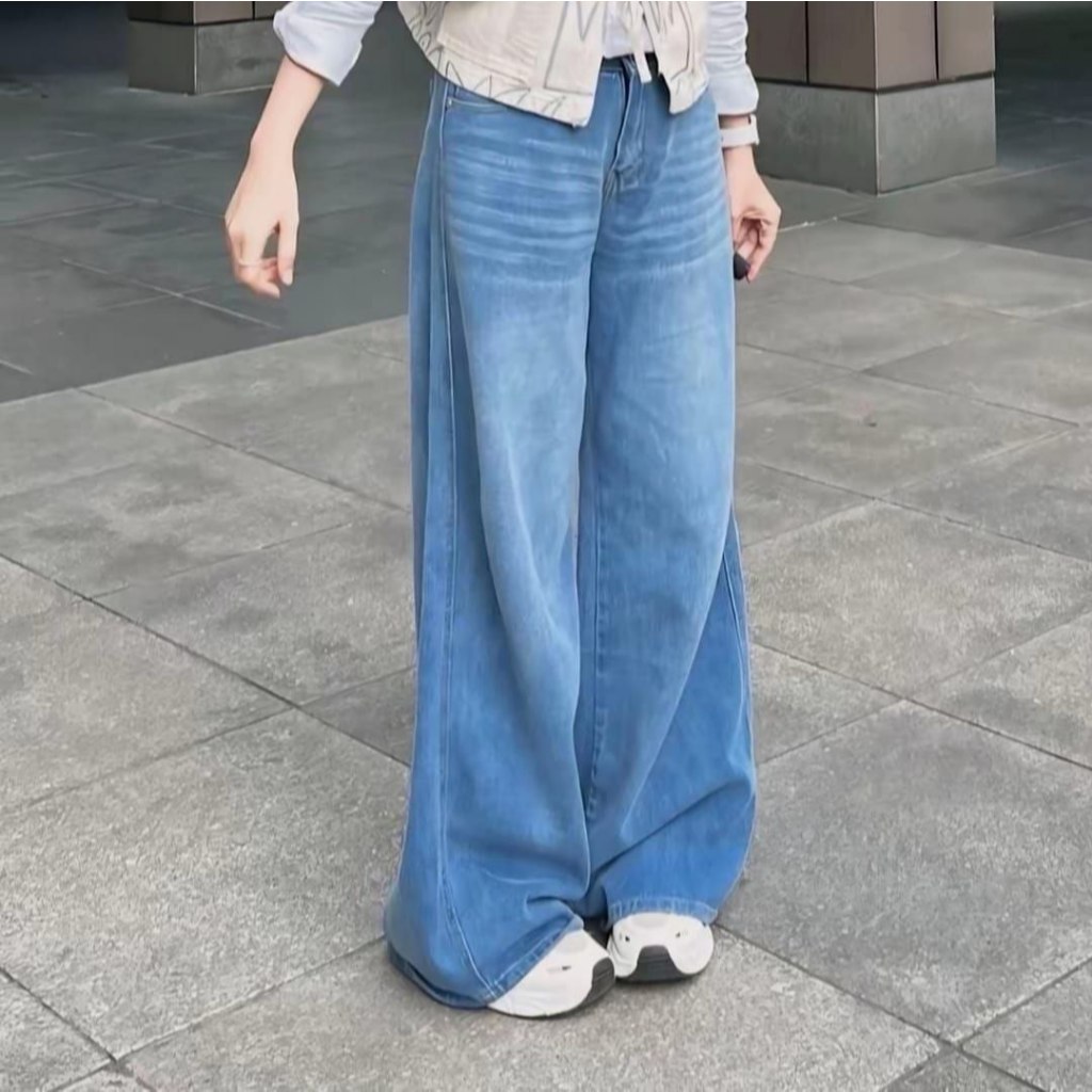 Jeans Celana Jeans terbaru kulot Korea Biru muda pinggang tinggi Baggy Jeans baggy baggy Murah Gratis Ongkir